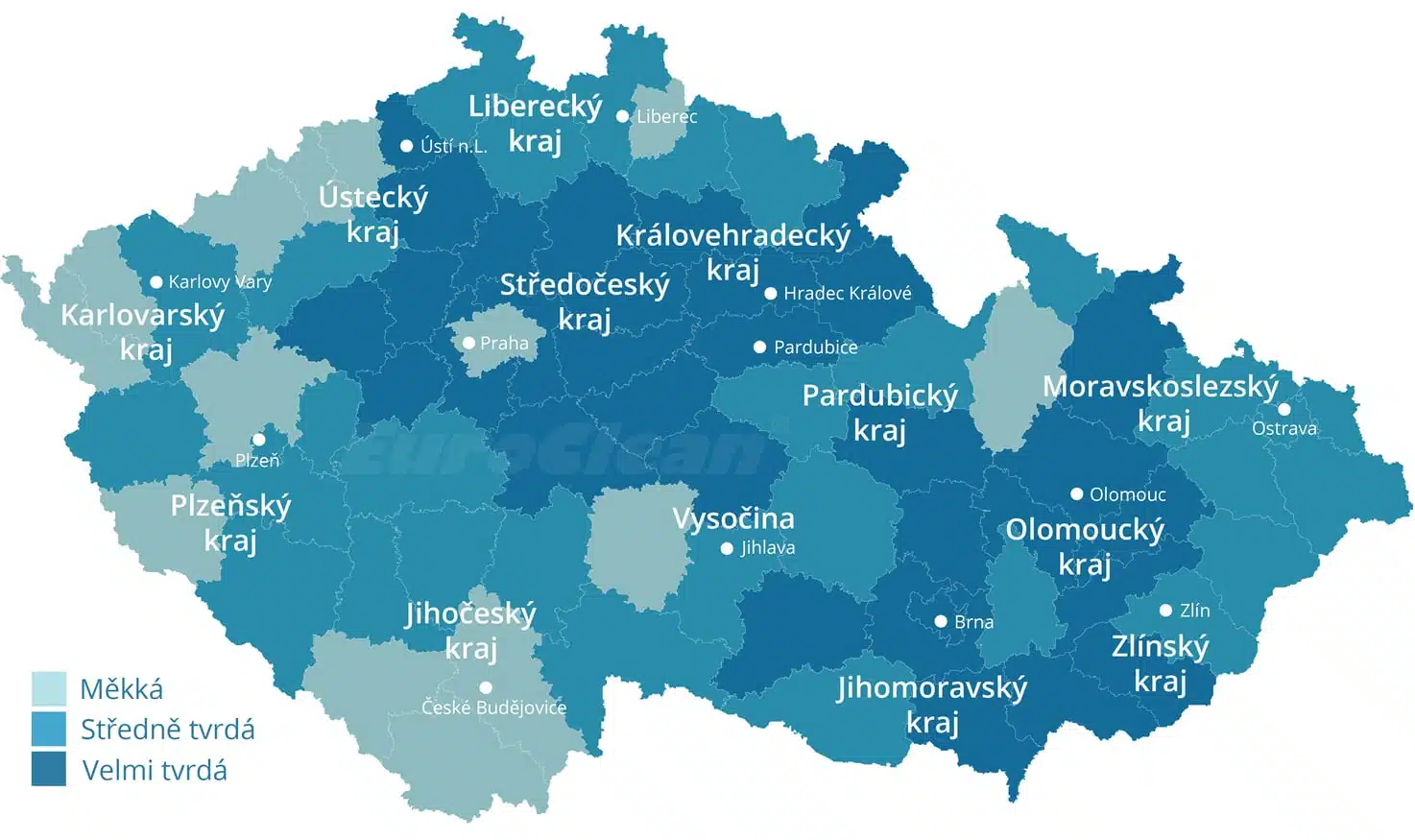 Tvrdost vody je v Jihlavě a okolí převážně na úrovni měkká.